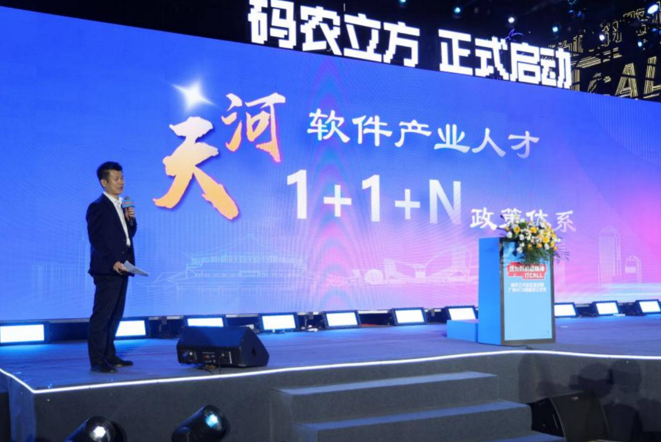 在启动仪式上,天园街道党工委书记宋爱平对“科韵路精神”的核心内涵进行了深度解读。区科工信局副局长曾雷重点解析天河区软件产业人才“1+1+N”政策体系,包括面向产业发展推出“明珠十条”,面向人才扶持推出“珍宝十条”以及“N”项细分领域专项扶持政策,这一政策体系为打造“码农立方”成为科韵路产业新高地注入强劲动力。